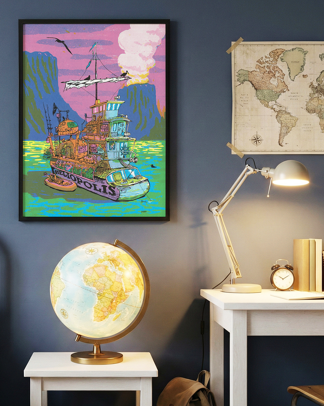 Passing through 2020, into 2021, and soon approaching 2022 anchors the mind. We are floating cities. We navigate the wind, reality, and the waters of the apocalypse. There is much yet to explore. The brave crew of the Heliopolis house boat press forward to explore the frontiers of consciousness and the dream world. Here, they have crossed into an uncharted tropical vortex. Volcanoes erupt around them. The air is poisoned, the water hot to the touch. To find their way they must wait for the skies to clear and the stars to shine. Will they keep their cool and make it through the chaos? Hop aboard and find out.